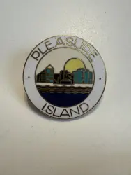 Round Pleasure Island Logo with Skyline is an Open Edition pin from the Pleasure Island pin series. It was available from Walt Disney World .