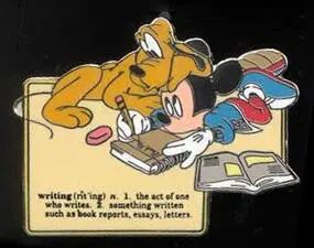 Writing - Mickey & Pluto is an Open Edition pin from the Back to School 2001 pin series. It was originally released on , 2001 and was available from Disneyland Resort .