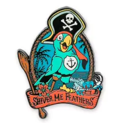 Shiver Me Feathers is an Open Edition pin from the Pirates of the Caribbean Traditional Tattoo Collection pin series. It was originally released on , 2025 and was available from Multiple Sources (WDW, DLR, etc.).