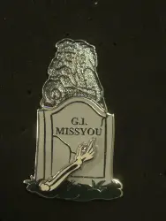Gus: G. I. Missyou is a Limited Release pin from the Haunted Mansion Tombstone Mystery pin series. It was originally released on , 2010 and was available from Multiple Sources (WDW, DLR, etc.).