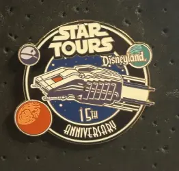 Star Tours 15th Anniversary is a Limited Edition (LE) 1500 pin from the Attraction Anniversaries pin series. It was originally released on , 2002 and was available from Disneyland Resort .