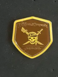 Pirates of the Caribbean Logo is a pin. It was available from Shanghai Disney Resort .