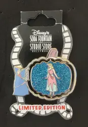 Cinderella and Fairy Godmother Spinner is a Limited Edition (LE) 300 pin from the Disney Soda Fountain pin series. It was originally released on , 2012 and was available from Disney Studio Store Hollywood / Soda Fountain .