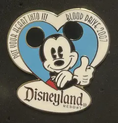 Mickey Mouse - 2007 is a Limited Edition (LE) pin from the Cast Member - Blood Drive pin series. It was originally released on , 2006 and was available from Disneyland Resort .
