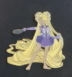 Rapunzel as Sailor Moon is a Limited Edition (LE) 60 pin. It is an Unlicensed (Fantasy) pin, so therefore it is not allowed to be traded in the Disney Parks.