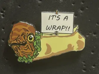 Ackburrito: it’s a wrap! is a pin. It is an Unlicensed (Fantasy) pin, so therefore it is not allowed to be traded in the Disney Parks.