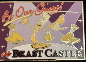 Lumiere at Beast's Castle is a Limited Edition (LE) 100 pin from the Disney Auctions Postcard Series pin series. It was originally released on , 2004 and was available from Disney Auctions .