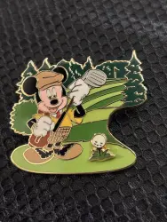 Mickey at the tee is a Limited Edition (LE) 300 pin from the Golf pin series. It was originally released on , 2010 and was available from Disney Studio Store Hollywood / Soda Fountain .