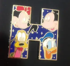 Mickey, Minnie, Donald and Pluto is an Open Edition pin from the Alphabet Stars Letters pin series. It was originally released on , 2011 and was available from Multiple Sources (WDW, DLR, etc.).