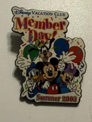 Member Day Summer 2003 is a Limited Edition (LE) 5000 pin from the Disney Vacation Club pin series. It was originally released 2003 and was available from Disney Vacation Club .