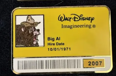 Big Al ID Badge is a Limited Edition (LE) 300 pin from the I.D. Badge Series 1 pin series. It was originally released on , 2007 and was available from Walt Disney Imagineering .