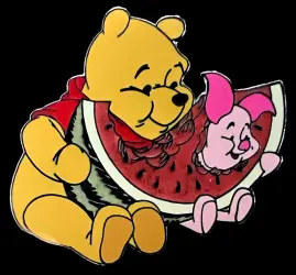 Pooh and Piglet Eating Watermelon is an Open Edition pin from the Winnie the Pooh pin series. It was originally released on , 2001 and was available from Disneyland Resort .
