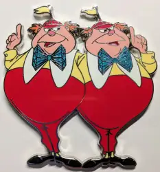 Tweedle Dee & Tweedle Dum is a Limited Edition (LE) 250 pin from the 60th Anniversary Diamond Celebration of Disneyland pin series. It was originally released on , 2016 and was available from Walt Disney Imagineering .