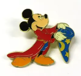 Pin features Mickey Mouse and Sorcerer Mickey from Fantasia