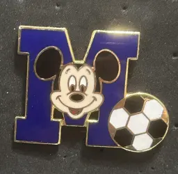 Mickey Letterman M Soccer is an Open Edition pin from the Mickey Soccer pin series. It was originally released on , 2005 and was available from Multiple Sources (WDW, DLR, etc.).