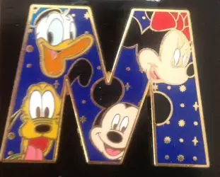 M Donald, Pluto, Mickey and Minnie is an Open Edition pin from the Alphabet Stars Letters pin series. It was originally released on , 2011 and was available from Multiple Sources (WDW, DLR, etc.).