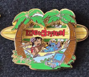 Lilo & Stich - Hammock is a Limited Edition (LE) 3000 pin from the Lilo & Stitch pin series. It was originally released 2002 and was available from Walt Disney World .