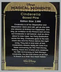 Magical Moments - Cinderella Set is a Limited Edition (LE) 2000 6-pin set from the Magical Moments pin series. It was originally released on , 2000 and was available from an Officially Licensed Disney trading pin vendor (see description for more information).