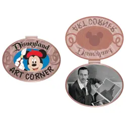 Disneyland Art Corner is a Limited Edition (LE) 400 pin from the Niftie Fifties Flashback Pin Trading Celebration 2025: Walt's Vision pin series. It was originally released on , 2025 and was available from Disneyland Resort .