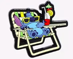 Stitch in Lawn Chair is an Open Edition pin from the Hot Topic - Disney Stitch & Angel Vacation Blind Box Scented pin series. It was originally released on , 2025 and was available from Loungefly .