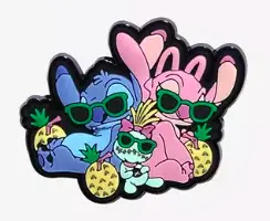 Stitch, Angel, and Scrump Wearing Sunglasses is an Open Edition pin from the Hot Topic - Disney Stitch & Angel Vacation Blind Box Scented pin series. It was originally released on , 2025 and was available from Loungefly .