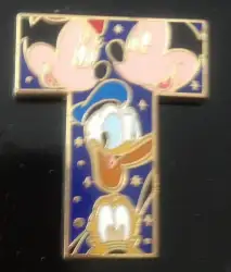 T Minnie, Mickey, Donald and Pluto is an Open Edition pin from the Alphabet Stars Letters pin series. It was originally released on , 2011 and was available from Multiple Sources (WDW, DLR, etc.).