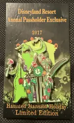 Haunted Mansion Holiday LE 2017 is a Limited Edition (LE) pin from the Annual Passholder Exclusive pin series. It was originally released on , 2017 and was available from Disneyland Resort .