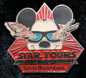 Star Tours The Adventure Continues TDR is a pin from the Star Tours pin series. It was available from Tokyo Disneyland Resort .