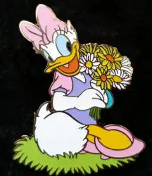 Daisy Duck Holding Flowers is a Limited Edition (LE) 300 pin from the Pun Pin pin series. It was originally released on , 2014 and was available from Disney Studio Store Hollywood / Soda Fountain .