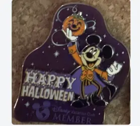 Mickey holding a jack-o-lantern - Happy Halloween - DVC is a Limited Edition (LE) 3000 pin from the Halloween pin series. It was originally released on , 2021 and was available from Disney Vacation Club .