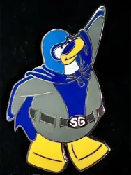 Super Hero SG is an Open Edition pin from the Club Penguin - Mystery Series pin series. It was originally released on , 2009 and was available from Multiple Sources (WDW, DLR, etc.).