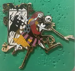 Pin features Jack Skellington and Sally from The Nightmare Before Christmas