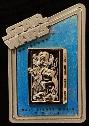 Donald Duck as Han Solo in Carbonite is a Limited Edition (LE) 1977 pin from the Star Wars Weekends 2014 pin series. It was originally released on , 2014 and was available from Walt Disney World .