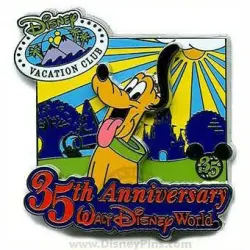 pluto 35th anniversary DVC is a Limited Edition (LE) 3500 pin from the Disney Vacation Club Anniversaries pin series. It was available from Walt Disney Studios .
