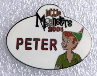 Peter Name Tag is an Open Edition pin from the Little Monsters pin series. It was originally released on , 2004 and was available from Disneyland Resort .