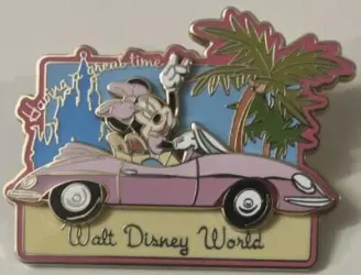 Minnie Mouse Pink Convertible is a pin from the Postcard Series pin series. It was available from Walt Disney World .