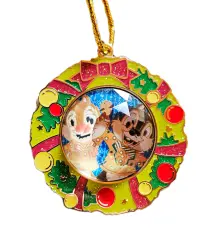 Chip & Dale in Wreath, Faceted Glass Dome is a Limited Edition (LE) 300 pin from the Christmas 2010 pin series. It was originally released on , 2010 and was available from Hong Kong Disneyland .