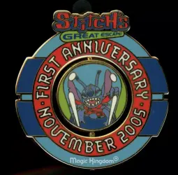 Stitch's Great Escape First Anniversary 2005 is a Limited Edition (LE) 2000 pin from the Stitch's Great Escape pin series. It was available from Walt Disney World .