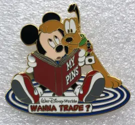 Mickey & Pluto - Pin Book is a Limited Edition (LE) 2500 pin from the Wanna Trade? pin series. It was originally released on , 2001 and was available from Walt Disney World .