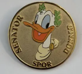Roman Gold Medallion - Senator Donald Duck SPQR is a Limited Edition (LE) 500 pin from the Donald Duck pin series. It was available from Disney Auctions .