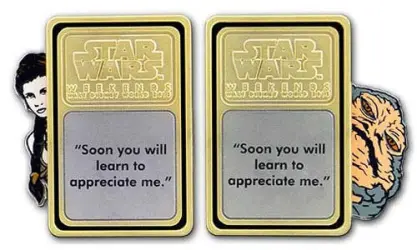 Soon you'll learn to appreciate me - Jabba and Leia is a Limited Edition (LE) 1500 pin in the Pivot Series 5-Pin Boxed Set 5-pin set from the Star Wars Weekends 2013 pin series. It was originally released on , 2013 and was available from Walt Disney World .