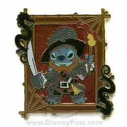 Stitch as Captain Barbossa (Concealed) is a Limited Edition (LE) 500 pin from the Pirates of the Caribbean Mickey & Friends Movie Mystery Collectors Set pin series. It was originally released on , 2007 and was available from Multiple Sources (WDW, DLR, etc.).