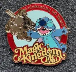 Stitch with gold dumbo is a pin in the Full Set 5-pin set from the Celebrating 40 Years Magic Kingdom Passholder pin series. It was originally released on , 2010 and was available from Walt Disney World .