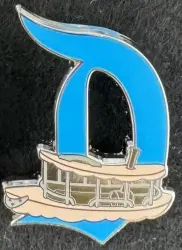Gothic D with Jungle Cruise Boat — Adventureland (Silver Version) is an Open Edition pin in the Key to Disneyland Mystery Collection (Silver Version) 9-pin set from the Disneyland Resort 70th Anniversary Celebration pin series. It was originally released on , 2025 and was available from Disneyland Resort .