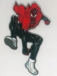 Miles Morales is a Limited Release pin from the David Nakayama Spiderverse Blind Box Mystery Pins pin series. It was originally released on , 2025 and was available from an Officially Licensed Disney trading pin vendor (see description for more information).