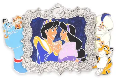 Aladdin & Jasmine is a Limited Edition (LE) 2400 pin from the Happily Ever After Frame Series Disney pin series. It was originally released on , 2025 and was available from Multiple Sources (WDW, DLR, etc.).
