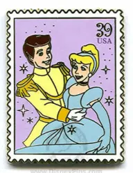 Cinderella & Prince Charming is an Open Edition pin from the USPS Stamps - Art of Disney Romance Disney pin series. It was originally released on , 2006 and was available from Disneyland Resort .