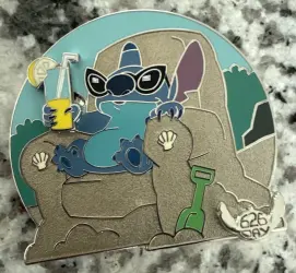 Stitch on Sand Chair is a Limited Edition (LE) 4000 pin from the Experiment 626 Collection pin series. It was originally released on , 2025 and was available from Multiple Sources (WDW, DLR, etc.).