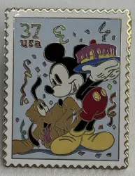 Mickey & Pluto Celebrate is an Open Edition pin from the USPS Stamp Release pin series. It was originally released on , 2006 and was available from Disneyland Resort .
