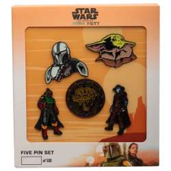 It's the book of Boba Fett, but the characters are already famous! This 5 pin set features the likenesses of Boba Fett, Din Djarin (aka: The Mandalorian), Grogu (aka: The Child and "Baby Yoda"), the fearsome bounty hunter Cad Bane, and the fierce Rancor Keeper logo. Mix, match, wear them all, delegate among friends, or display in the collectable packaging. This officially licensed product is a limited edition of 500 sets, so get yours before they go far, far away.
